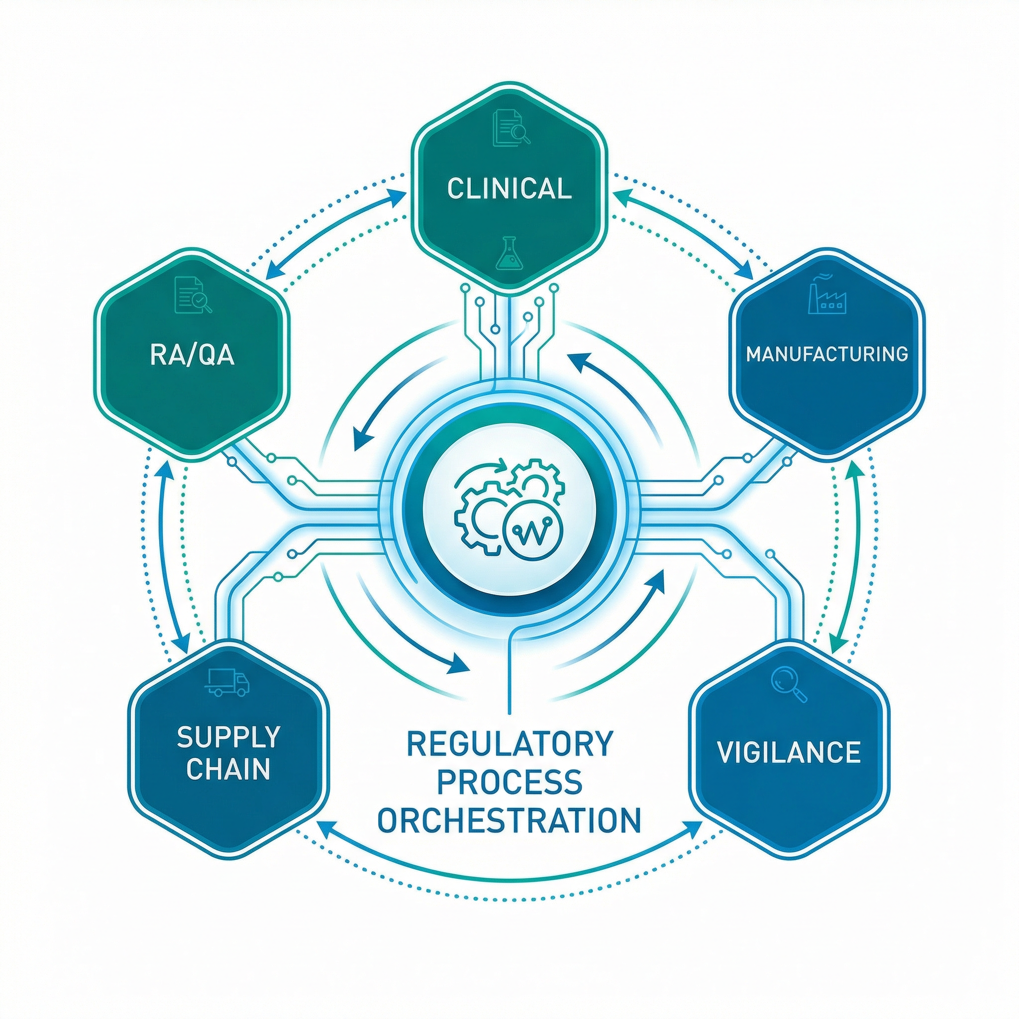 Regulatory lifecycle management, cross-functional coordination, and stakeholder communication automation.